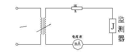 5、進(jìn)行監(jiān)測(cè)器電流表測(cè)量特性試驗(yàn)時(shí),在工頻電壓可調(diào)回路中,依次串聯(lián)接入一個(gè)阻值為3K的電阻、監(jiān)測(cè)器、標(biāo)準(zhǔn)電流表(電流表的精度應(yīng)高于監(jiān)測(cè)器的測(cè)量精度)。校驗(yàn)時(shí)從零逐漸增加電壓,從而驗(yàn)證電流表的測(cè)量精度。(具體接線方法見圖1)