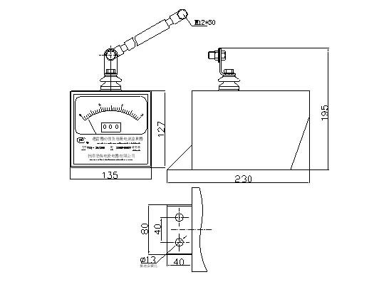 2、監(jiān)測(cè)器的安裝高度位置應(yīng)便于觀看,安裝時(shí)用軟電纜將監(jiān)測(cè)器的高壓端子與避雷器的接地端子相連,接地線應(yīng)接在監(jiān)測(cè)器的2-ф13安裝孔處。